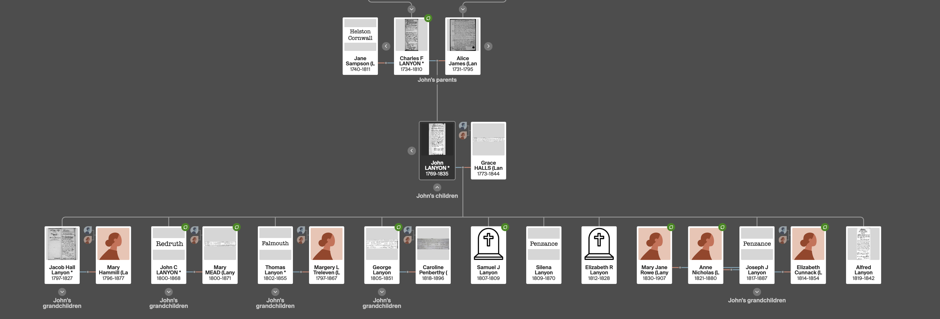 - John Charles 1800-1868 married Mary Mead – ten children (see post about John Charles Lanyon)