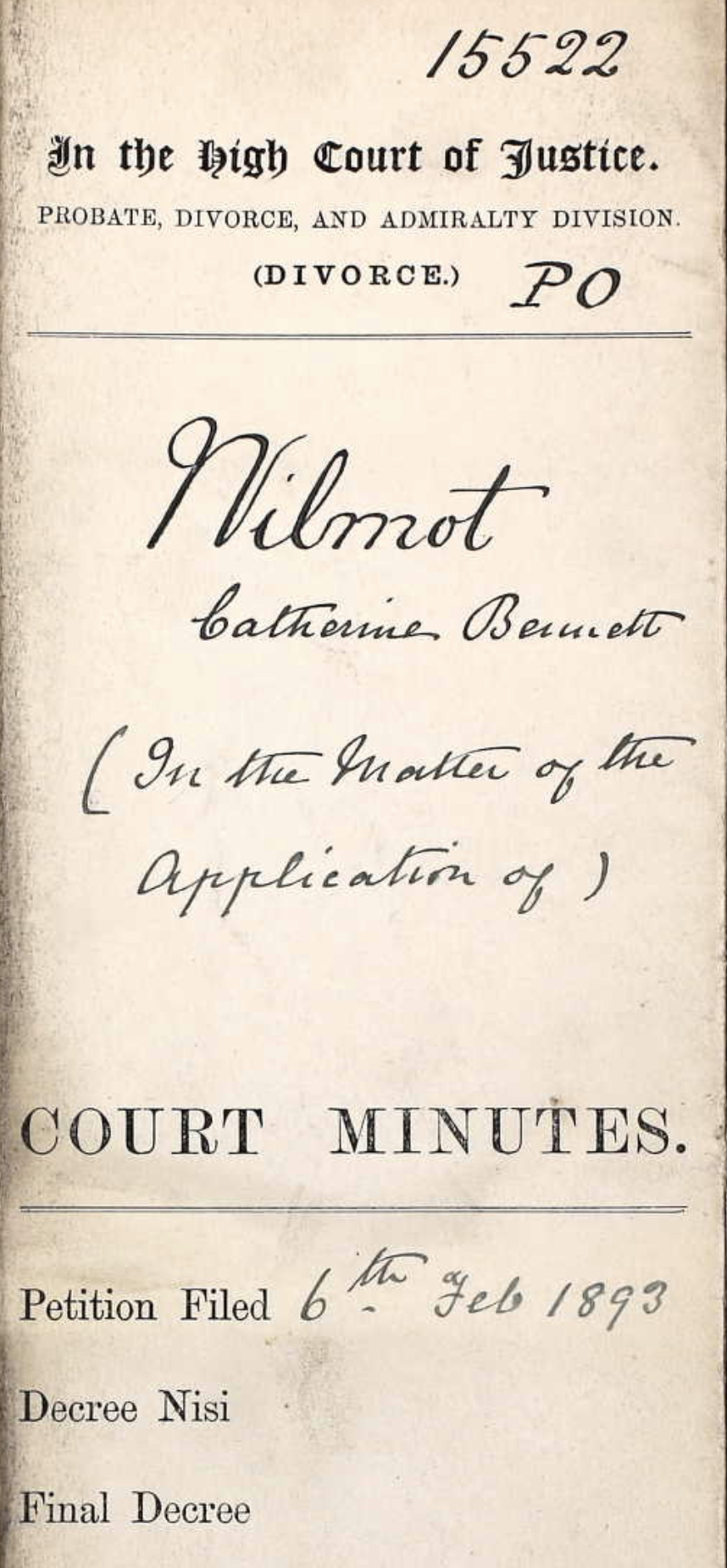 On 2 Feb 1893 Catherine Bennett Wilmot petitioned the divorce court to protect her earnings and property earned by working as a professional nurse. She didn’t use the surname Gould or Howard and no mention is made of her second marriage.