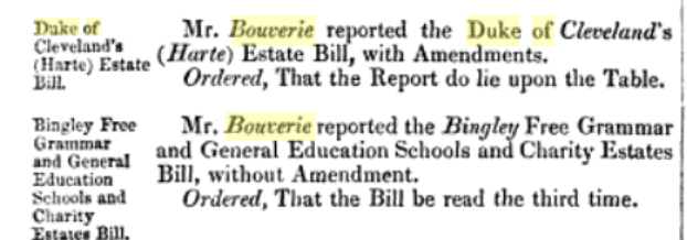In August 1853 the ‘Journals of the House of Commons’ reported the following and that may have given Temple an idea for some new middle names! Voila, Temple Bouverie Cleveland Wilmot was ‘born’!