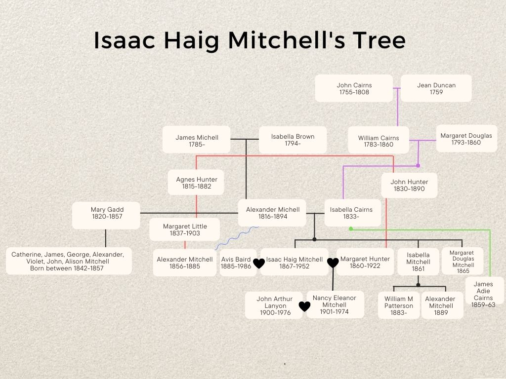 Nancy Eleanor Mitchell (1901-74) married John Arthur Lanyon. Nancy was the only daughter of Isaac Haig Mitchell and Margaret Hunter. Margaret’s story is told in the post ‘DNA Detective’, this is the story of Isaac’s family.