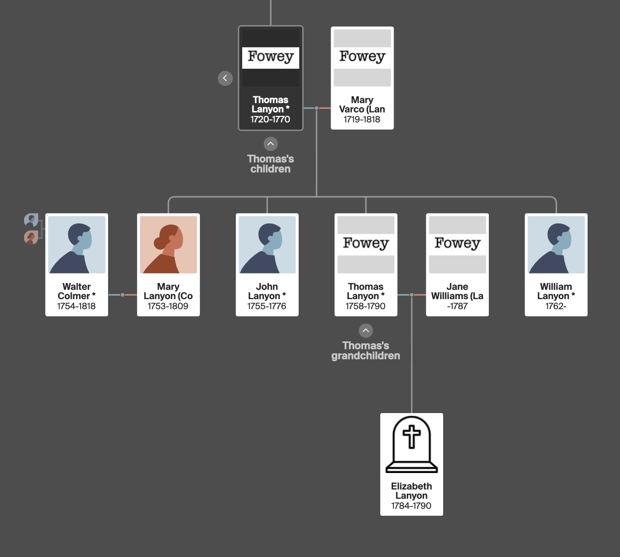 - Mary 1753- was born at Fowey and she married Walter Colmer at Fowey in 1774 and had 9 children, the eldest was called John Lanyon Colmer.