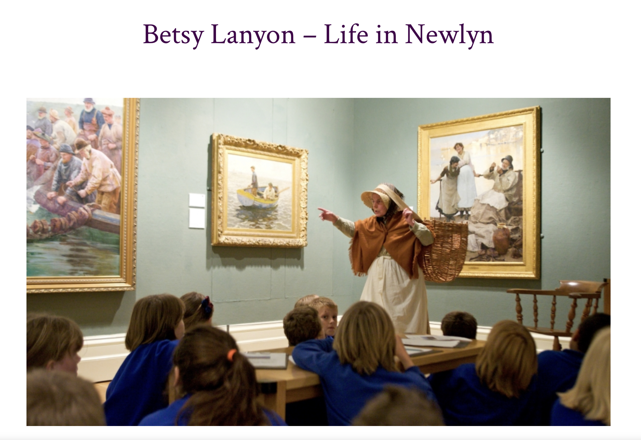 Francis senior died in 1865 and Elizabeth/Betsy died at Newlyn in 1892 but Betsy Lanyon lives on… she is now a ‘living’ part of history and talks to visitors at the Penlee House Gallery & Museum about life in Newlyn in the 19th century.