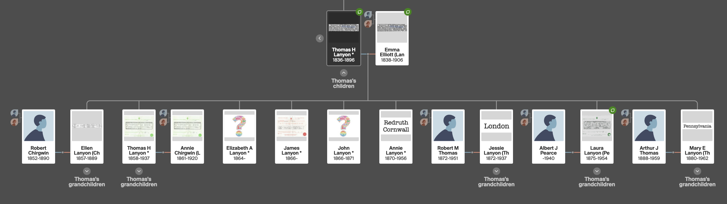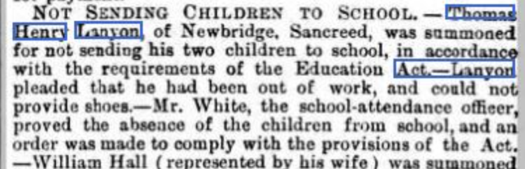 John Lanyon and Mary Ellis had a large family but their descendants quite often left no traceable issue.