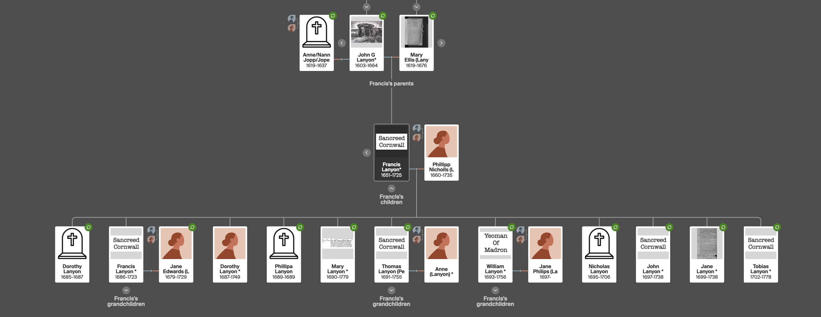 Francis Lanyon 1651-1725 had six sons.