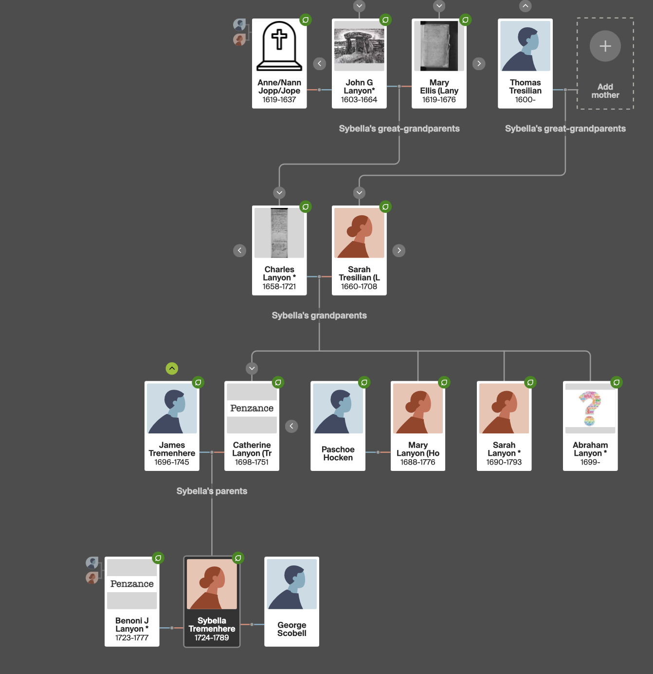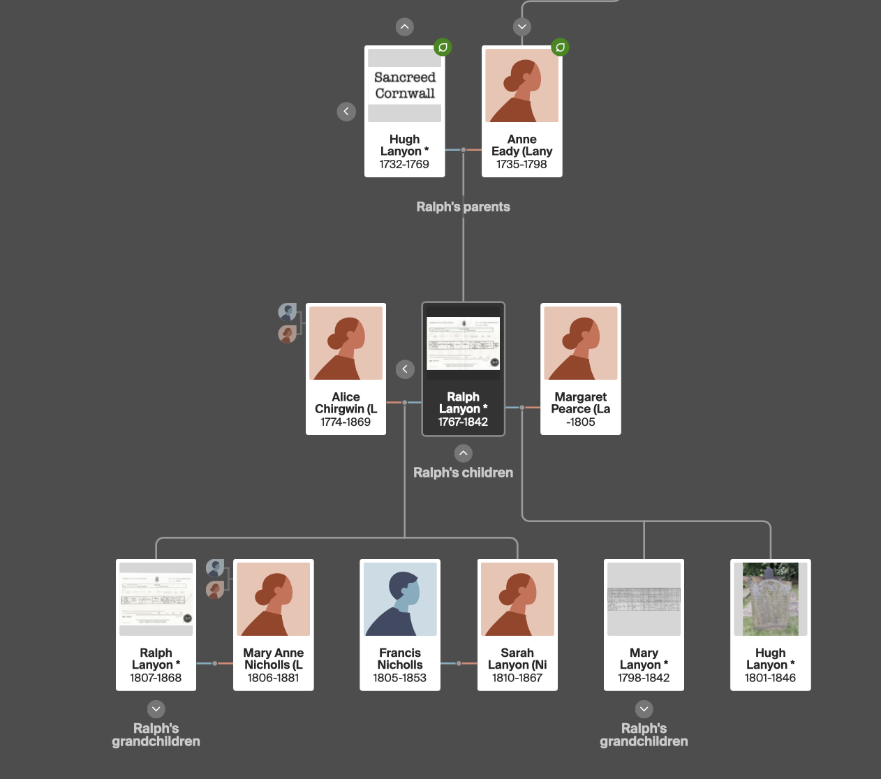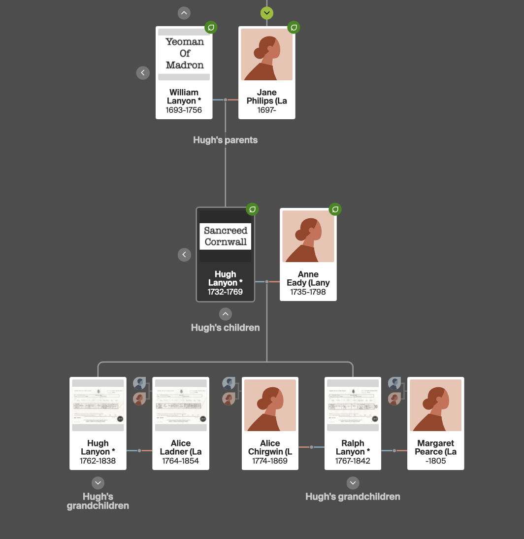 Ralph was the younger son of Hugh Lanyon and Anne Eady. He worked as an agricultural labourer. His first marriage was to Margaret Pearce in 1796 at Paul. There were two children from this marriage.