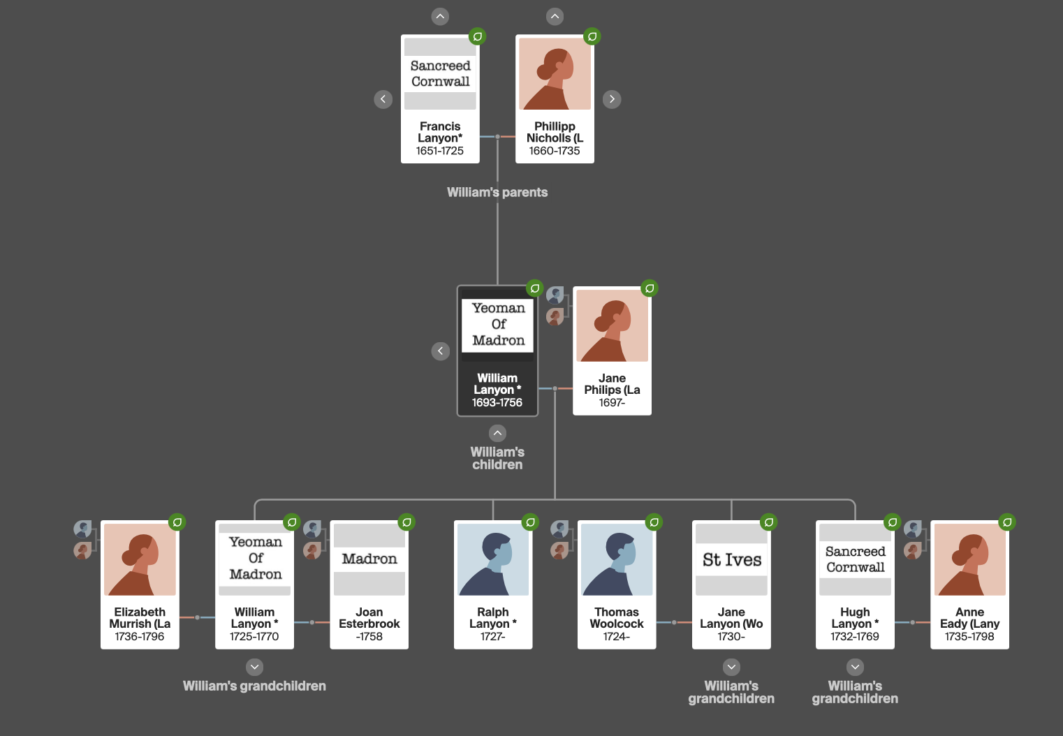 William was a yeoman of Madron and married Jane Philips at Zennor in August 1725.