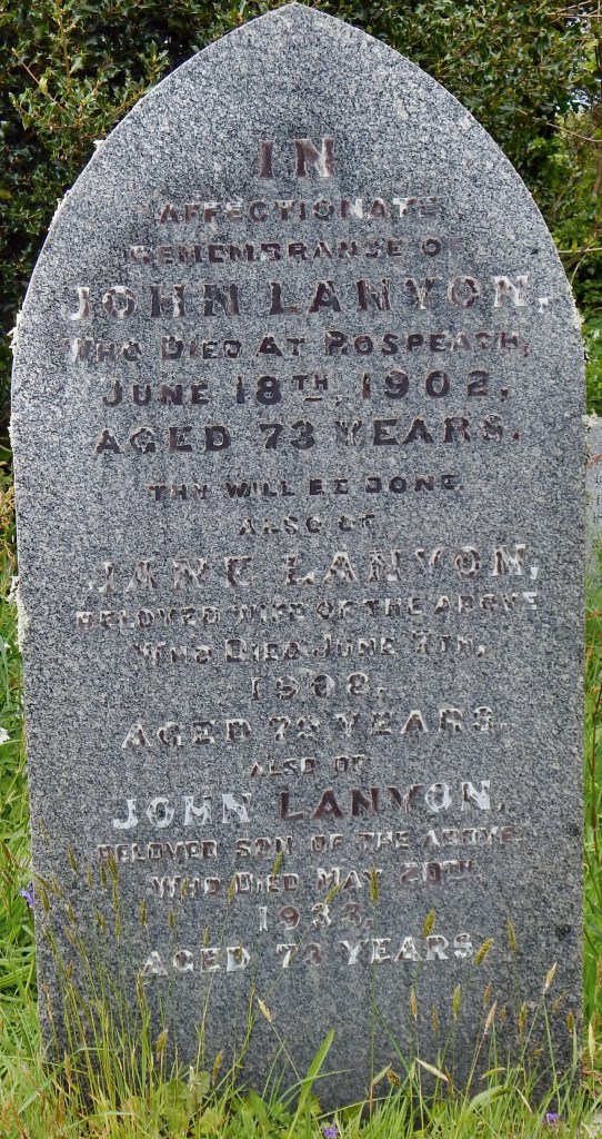 Of those nine children only four sons had children of their own who carried on the Lanyon name, William, Joseph, Henry and James.