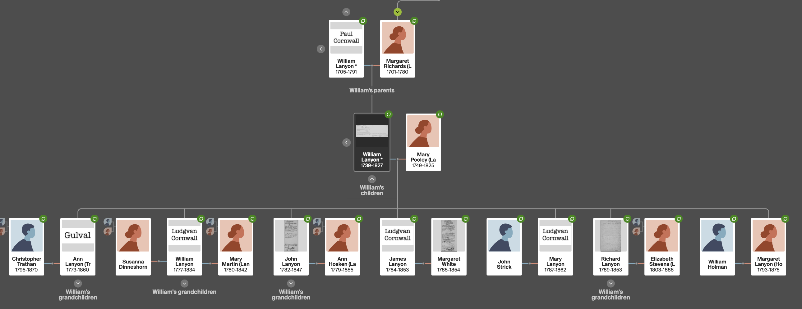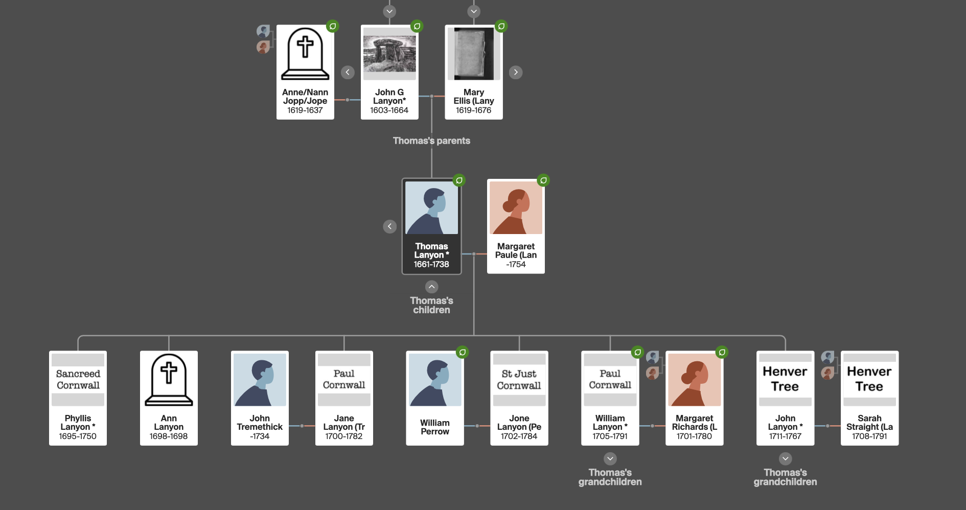 The final branch of the Botrea tree are the sons of Thomas Lanyon 1661-1738.