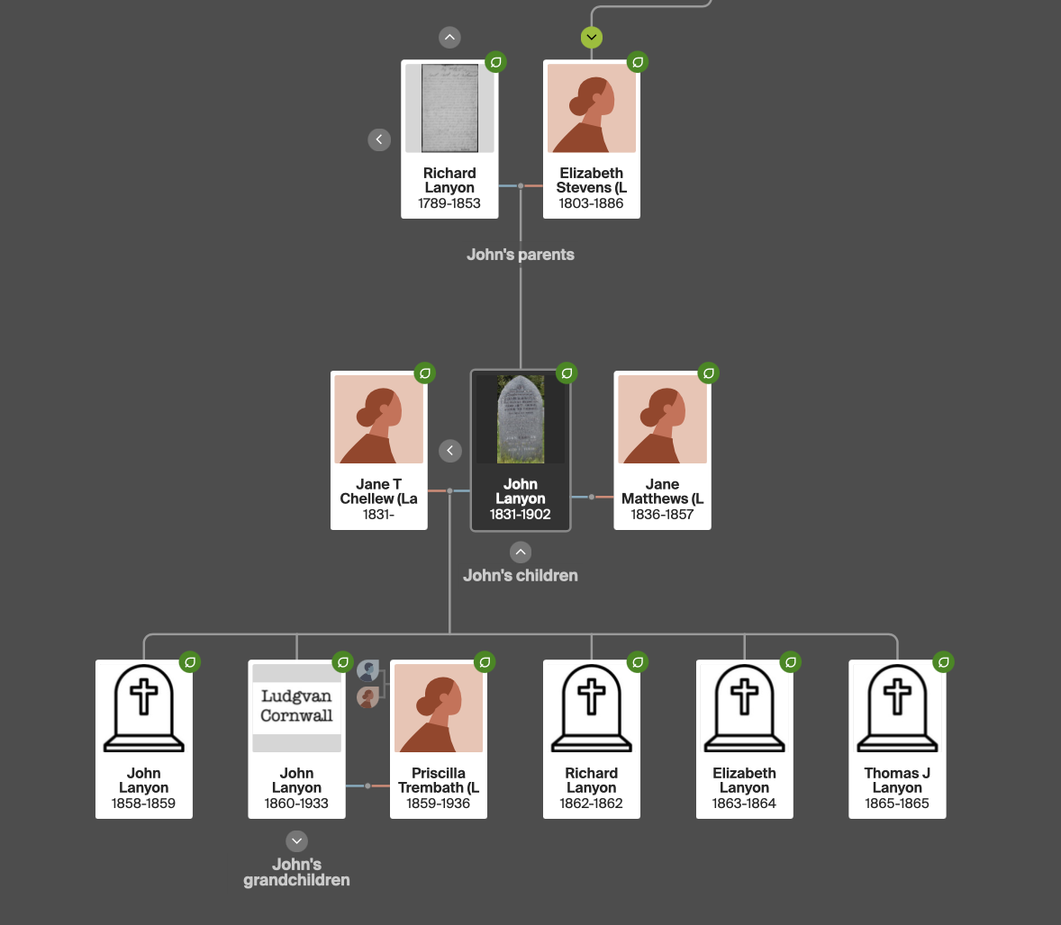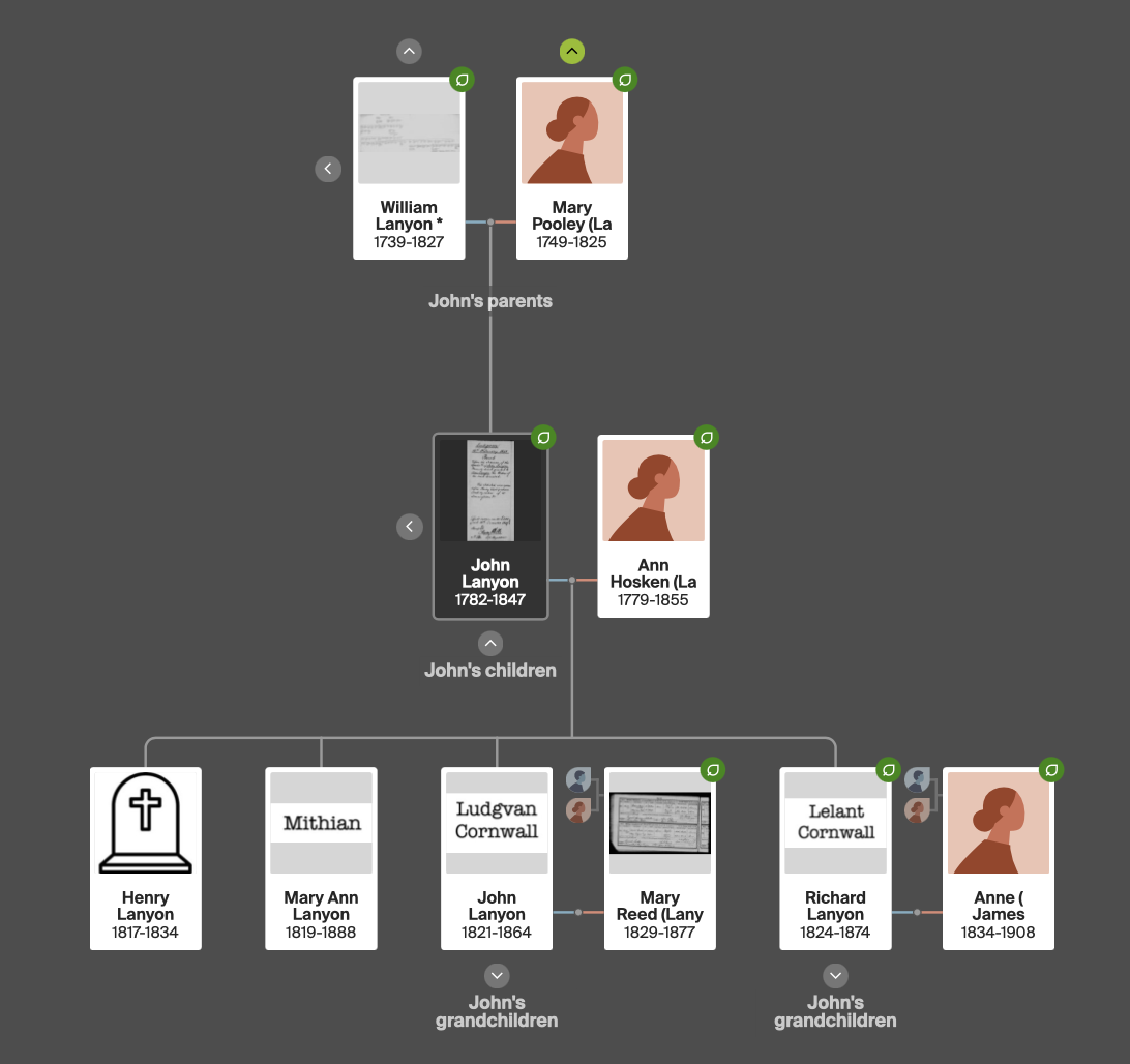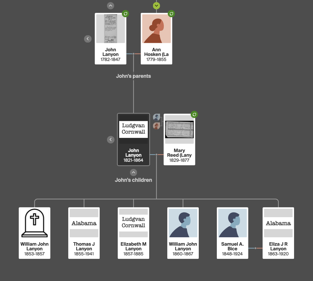 That’s where we leave William and Mary Martin’s branch of the tree and move to his brother John Lanyon.