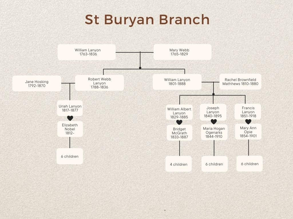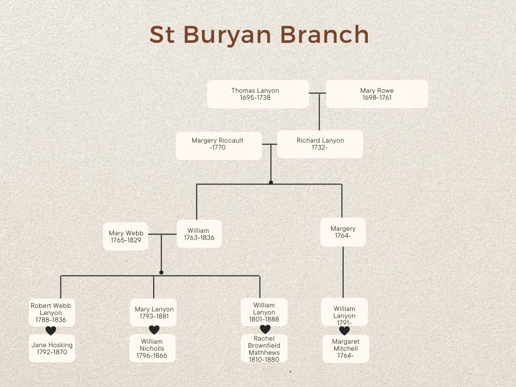 Amazing to tap into the work which has been put together. I’m sure it would have been quite a journey. My Mother insisted we visited St Buryan in the early 1990s on her only trip from Australia. She had found the Lanyon connection to Rachel Brownfield Lanyon. My mother passed away 10 years ago now but I can’t help think she would be so excited that I’ve managed to connect back via your site to the beginning of your Lanyon tree.