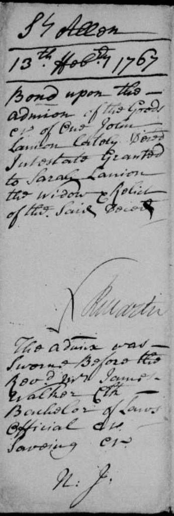 John died intestate in 1767 and administration of his estate was passed to Sarah his widow, Richard Straight, his brother-in-law and James Fox of Lostwithiel.
