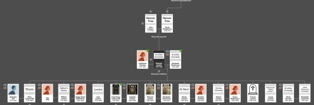 Richard and Henry were the ancestors of hundreds of Lanyons who ended up all over the world and we’ll follow their sons in separate posts. Get ready for some complicated intermarrying!