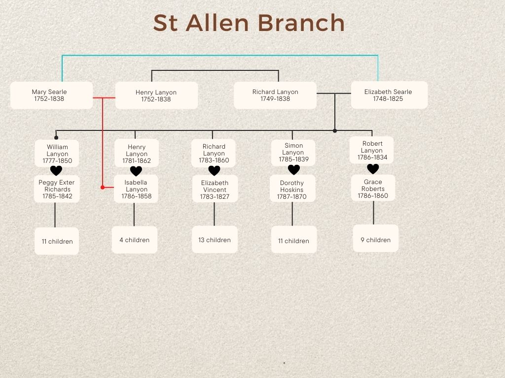 Two Lanyon brothers (Richard & Henry) married two Searle sisters (Elizabeth & Mary) and each couple had ten children. This post is about Richard and Elizabeth’s sons who had children.
