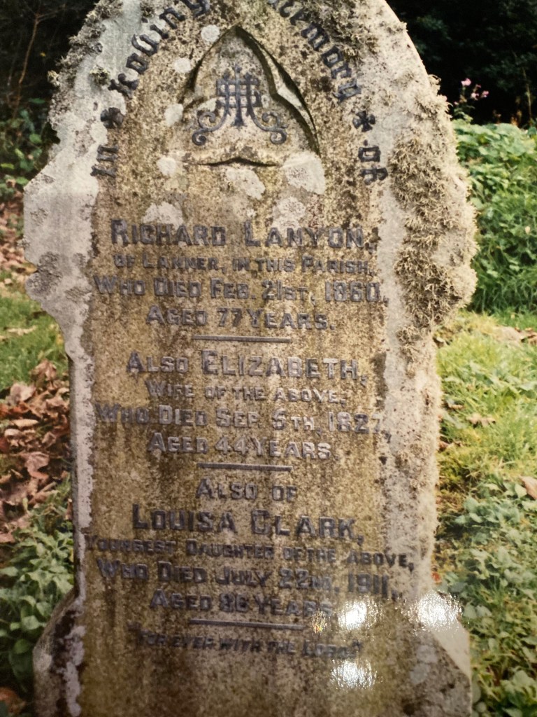 Richard was the fourth son of Richard and Elizabeth (second son John was a bachelor). He was a farmer and inherited his father’s estate, Polstain. He married Elizabeth Vincent at St Allen in 1803, so father and son were both Richard Lanyons married to women called Elizabeth! He and Elizabeth had thirteen children: