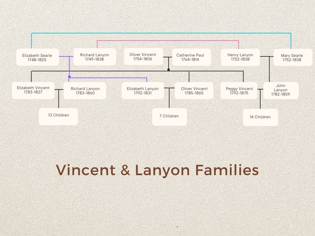 Richard and Henry Lanyons children married into the Vincent family. Three of Oliver Vincent and Catherine Paul’s children married three Lanyon cousins.