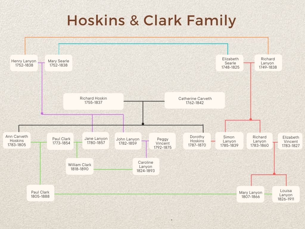 Where to begin? Paul Clark 1773-1854 married Ann Carveth Hoskins and they had a son also called Paul Clark born in 1805. When Ann Carveth Hoskins died Paul married Jane Lanyon (the daughter of Henry Lanyon & Mary Searle) then had a son called William Clark.
