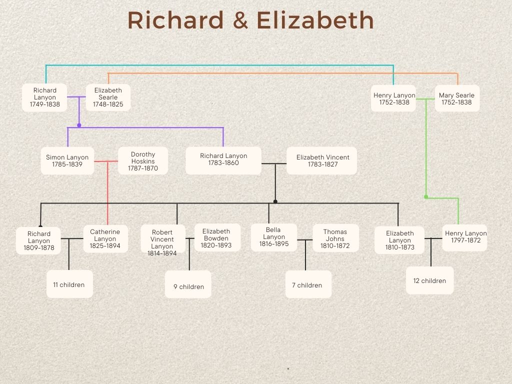 Richard Lanyon and Elizabeth Vincent had thirteen children, we’re following the children of Richard 1809-1878, Robert Vincent 1814-1894, Bella 1816-1894 and Elizabeth 1810-1893.