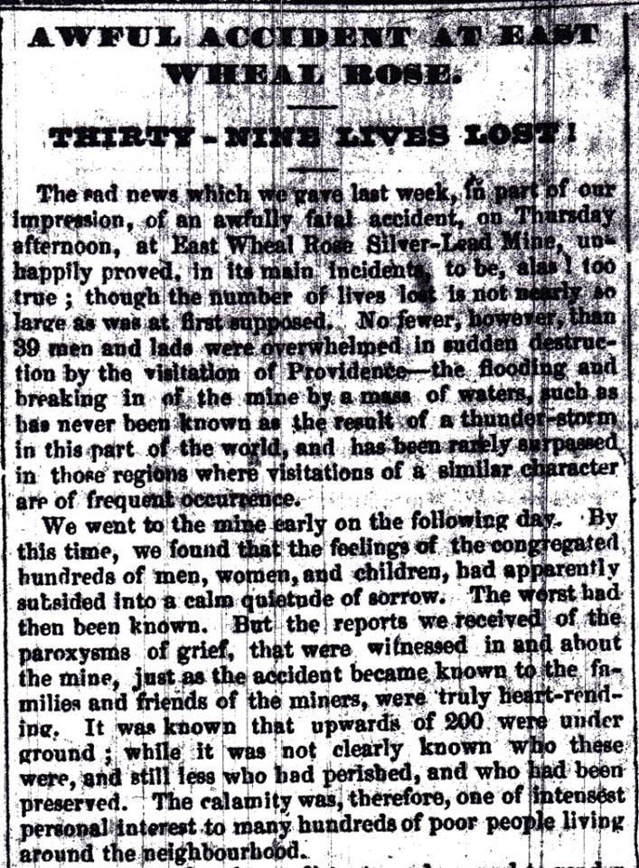 The East Wheal Rose mining disaster of 1846 was the worst mining disaster in Cornish history.