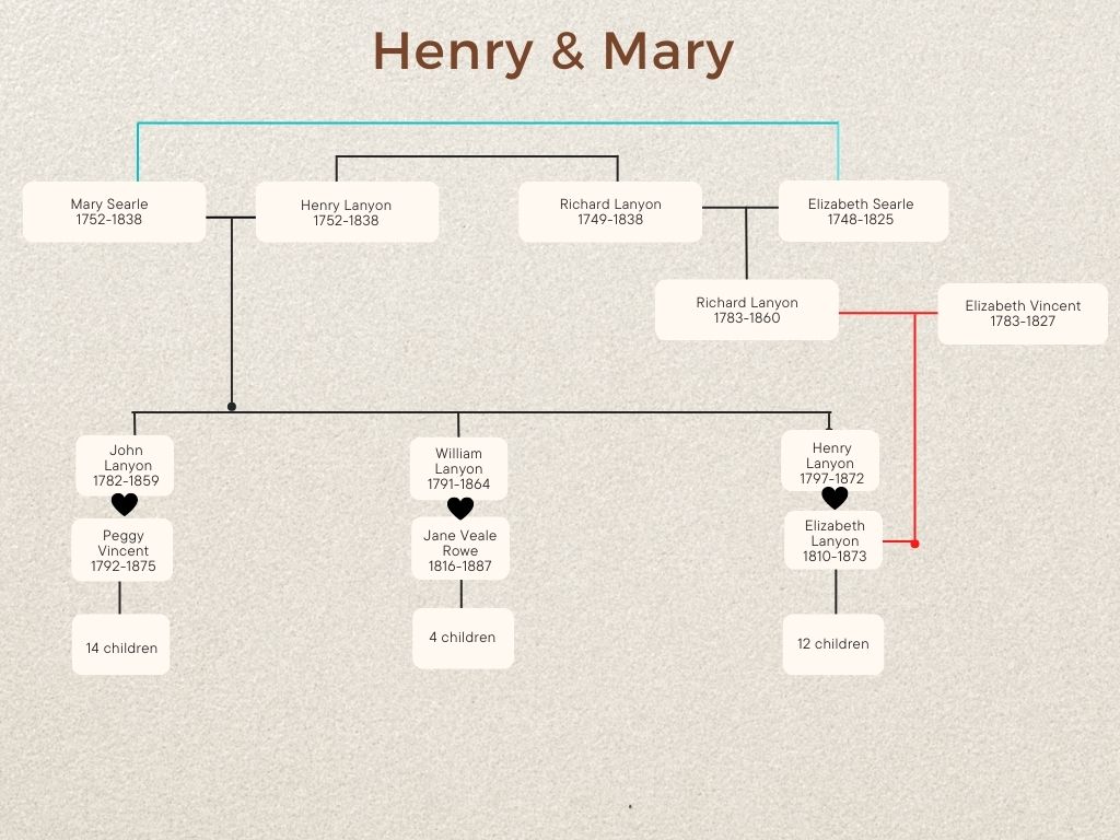 Henry and Elizabeth were first cousins once removed. They had twelve children and of them, three sons to carry on the Lanyon name.