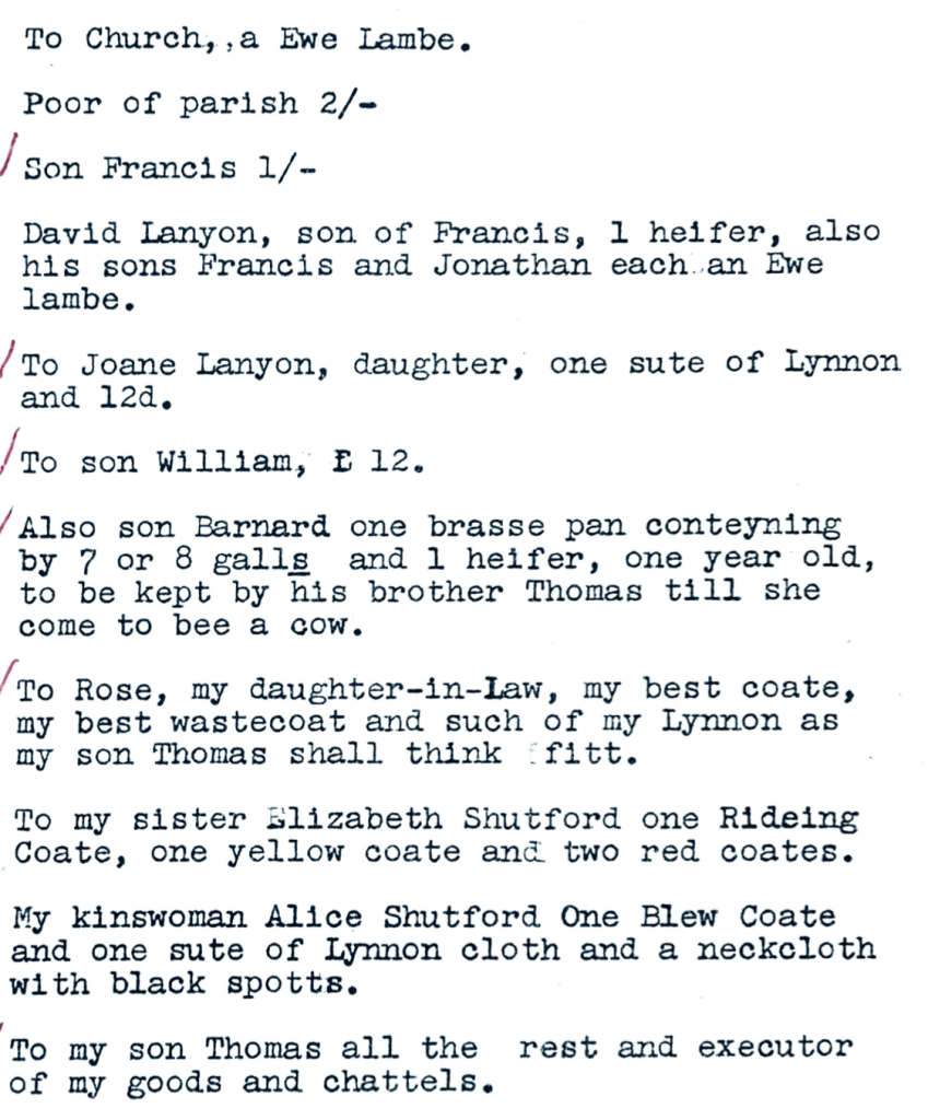- The will of Joan Lanyon (Shutford) 1655 (Source – NA PROB 11/257/72) Joan was the wife of David Lanyon of Madron and her will mentions her Shutford relatives