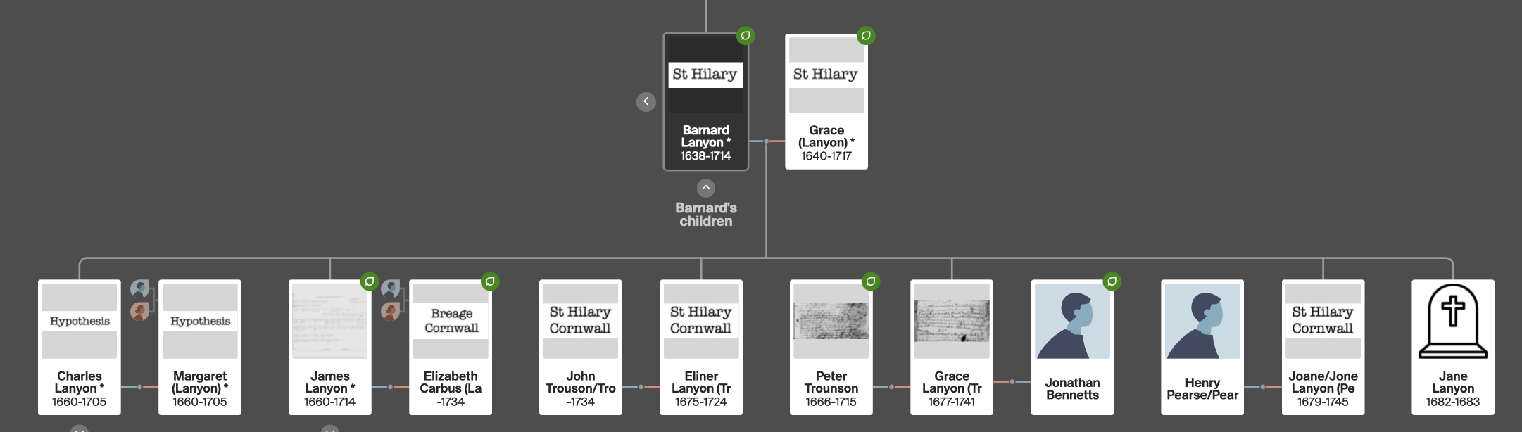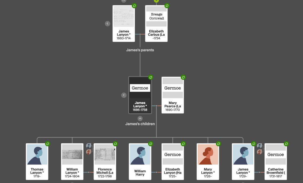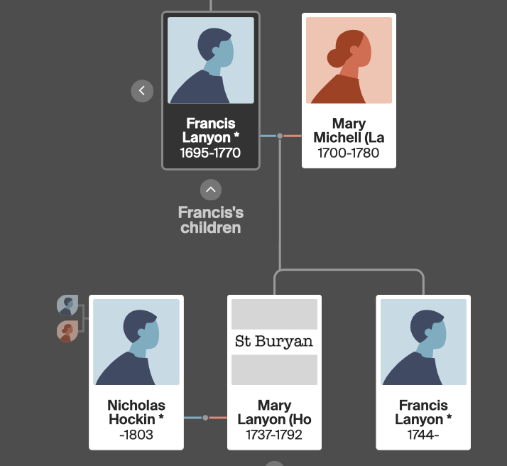 The St Hilary branch of the family now rests with James Lanyon 1686-1758 and Mary Pearce, can his sons William and James keep the tree going?