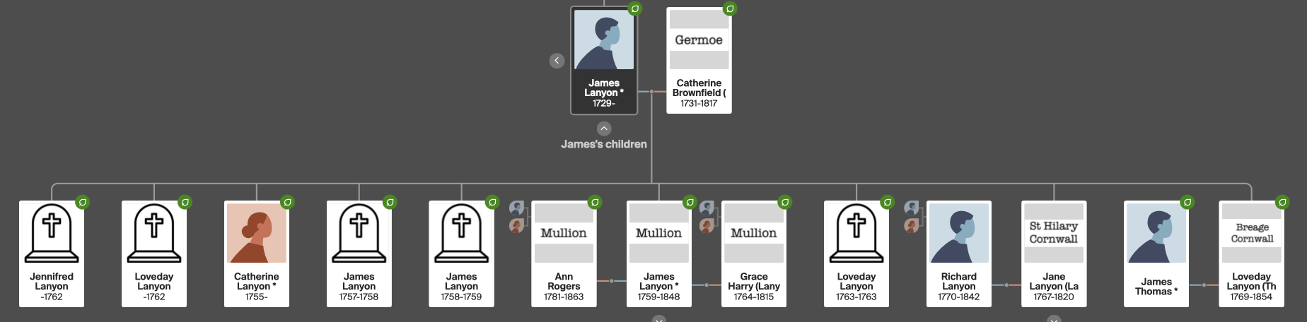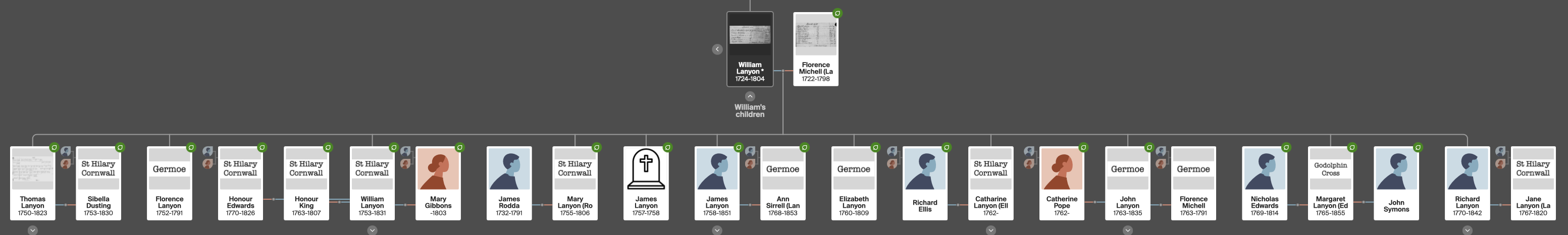 - Jane 1767-1820 married Richard Lanyon her cousin, the son of William Lanyon and Florence Michell