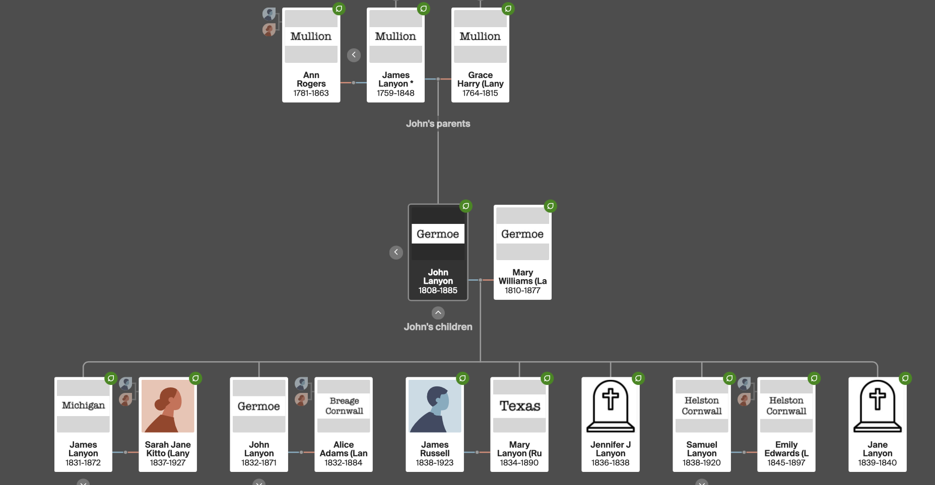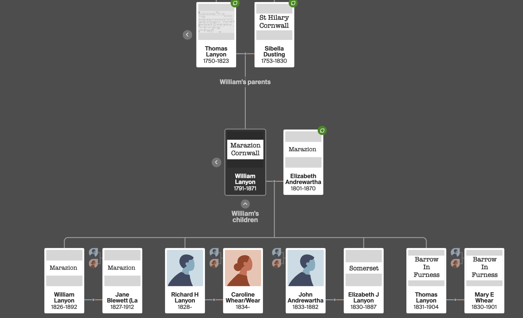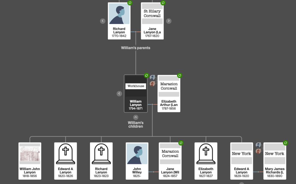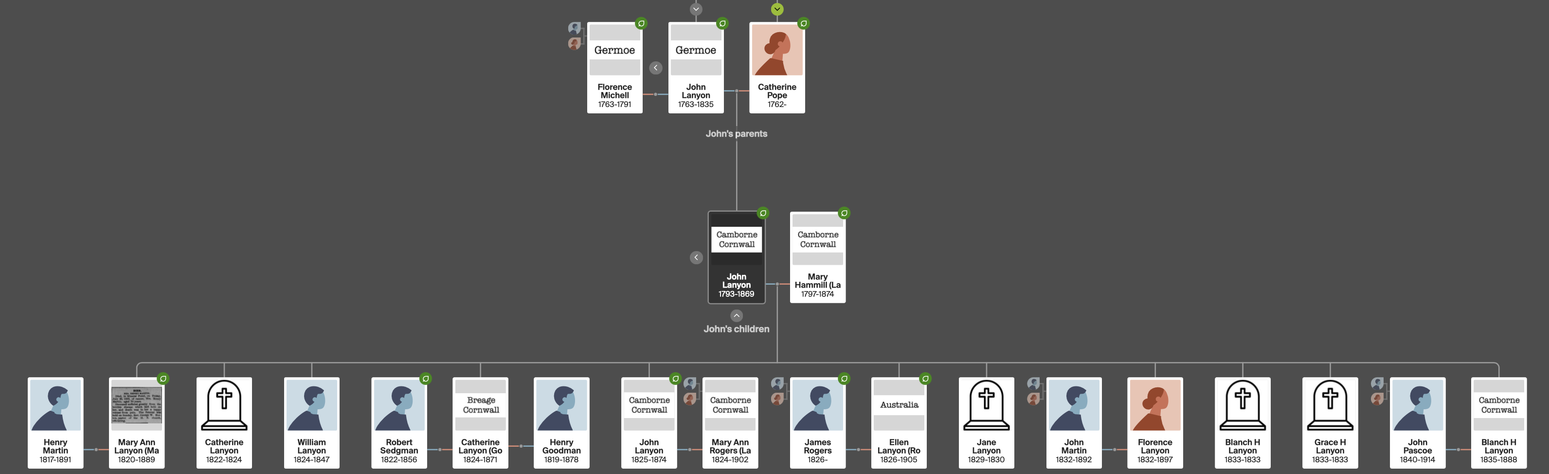 James Lanyon and Mary Pearce had six great grandsons to carry on the family name: two called Thomas, two called William and two called John!