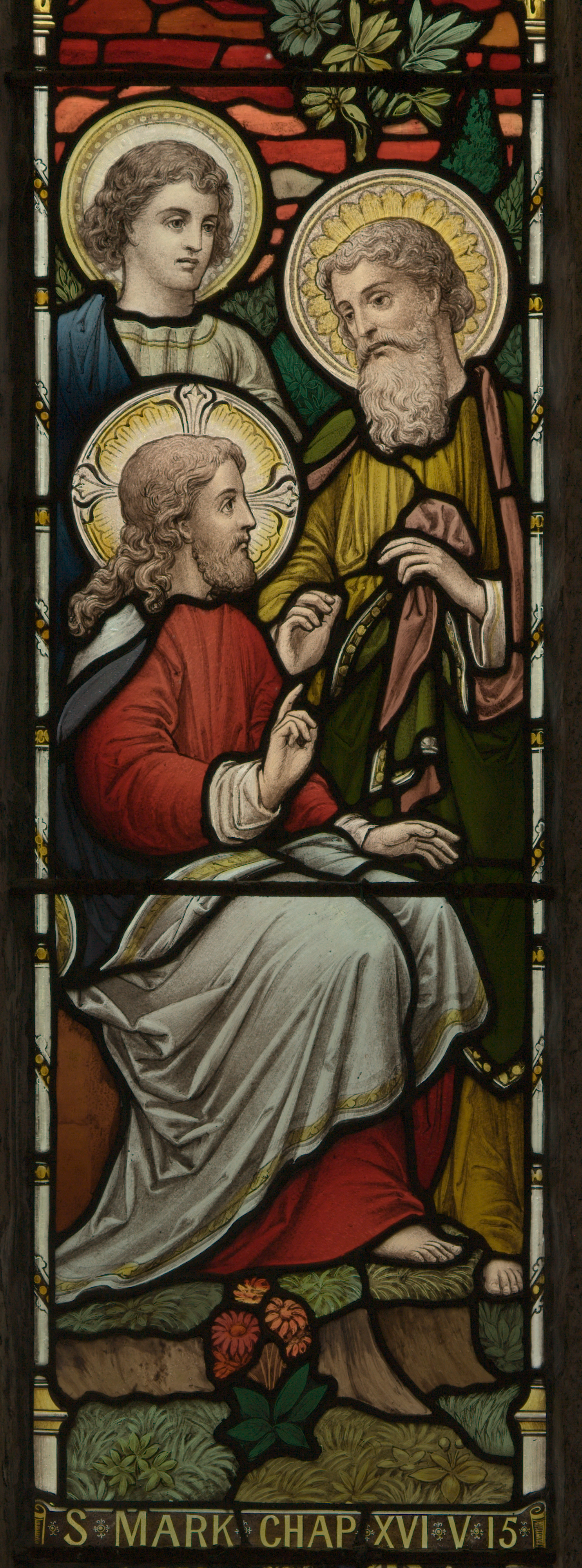 1. Christ’s commission to Peter: “Feed my sheep” – Panel 1 in memory of John and Peggy Lanyon of Henver. (Post about John and Peggy in St Allen branch – ‘Henry and Mary Lanyon’s Sons’.)