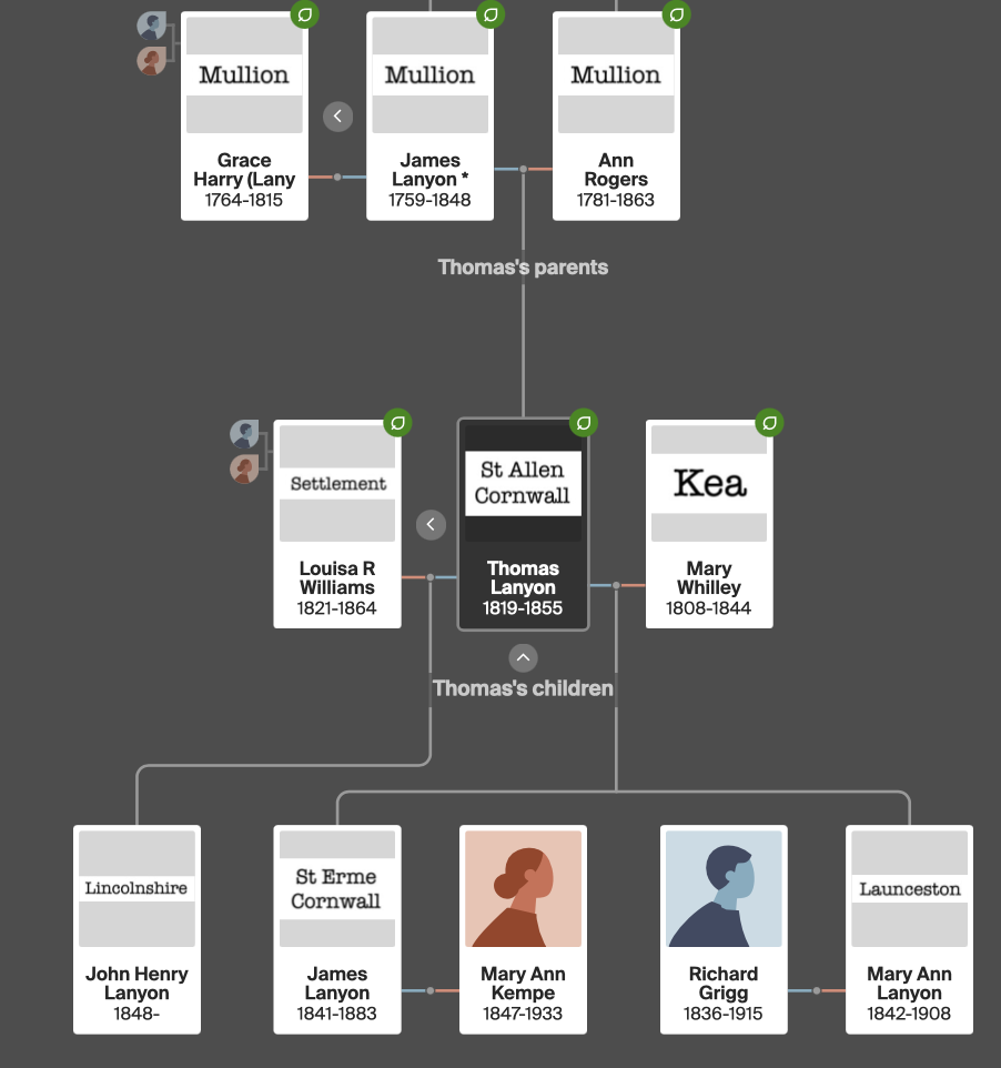 Mary Ann Lanyon 1842-1908 married Richard Grigg, a carrier, in 1883 at Penzance and they never had any children.