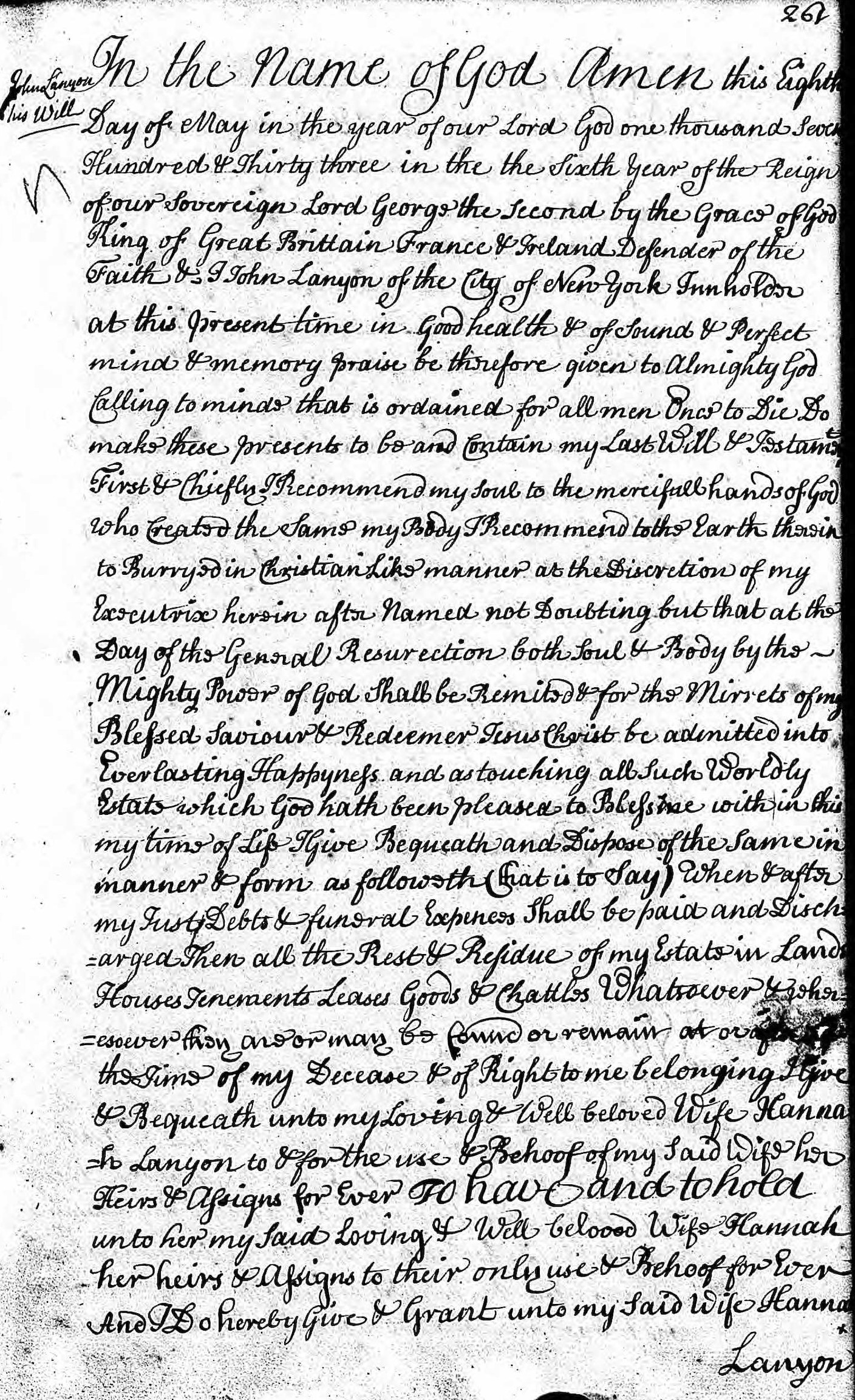On 9 Jun 1722 John Lanyon married Hanna Rierden in New York.
