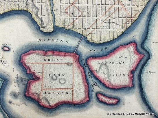 Great Barents Island (now Randalls & Wards Islands) at Harlem was sold 9 Aug 1687 by Jacob Milborne to Thomas Parcell. Thomas Parcell was the son of John Parcell also known as ‘John the butcher’ from Huntingdon county, England, who early settled at Dutch Kills. When John died in 1680 he left his children: Thomas, William, Henry and Catherine an estate worth 6,000 guilders. Thomas, born 1653 and bred a blacksmith, married Christina Van Hattem. On removing to Great Barents Island, he sold his lands at Dutch Kills to Bourgon Broucard and Hans Covert on 21 Jun 1690 for 4,087 pounds. Parcell built a grist mill at the upper side of his island. His son John bought the northern half of the island 4 Jun 1722 and on 29 Mar 1723, Thomas and Christina sold the other half to son-in-law John Lanyon of New York, innkeeper. Parcell died prior to 1732 on Spectacle or Hart Island (Now City Island) which he then owned. His will mentions his children: Nicholas, John, Henry, Hannah and Eda.