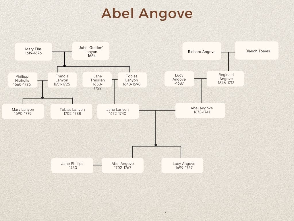 There is no record of a marriage for Abel Angove senior. His wife was called Jane and that’s as much as we know for certain. It does however seem likely that she was a Lanyon.