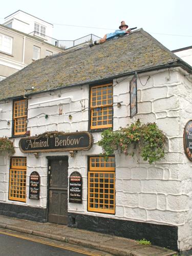 The ‘man on the roof’ of the pub is Octavious Lanyon reputedly the head of the Benbow Brandy Men.