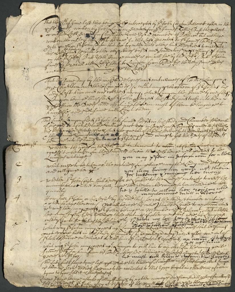 The document also explains that Lady Coryton had been a ‘maltster’ (a brewer) in Sir John’s house and he was advised that he could sell the stock and receive the proceeds. The legal opinion goes on to explain that if Lady Coryton was with child which Sir John did not want to inherit then he must sue for divorce but must have full proof of adultery.