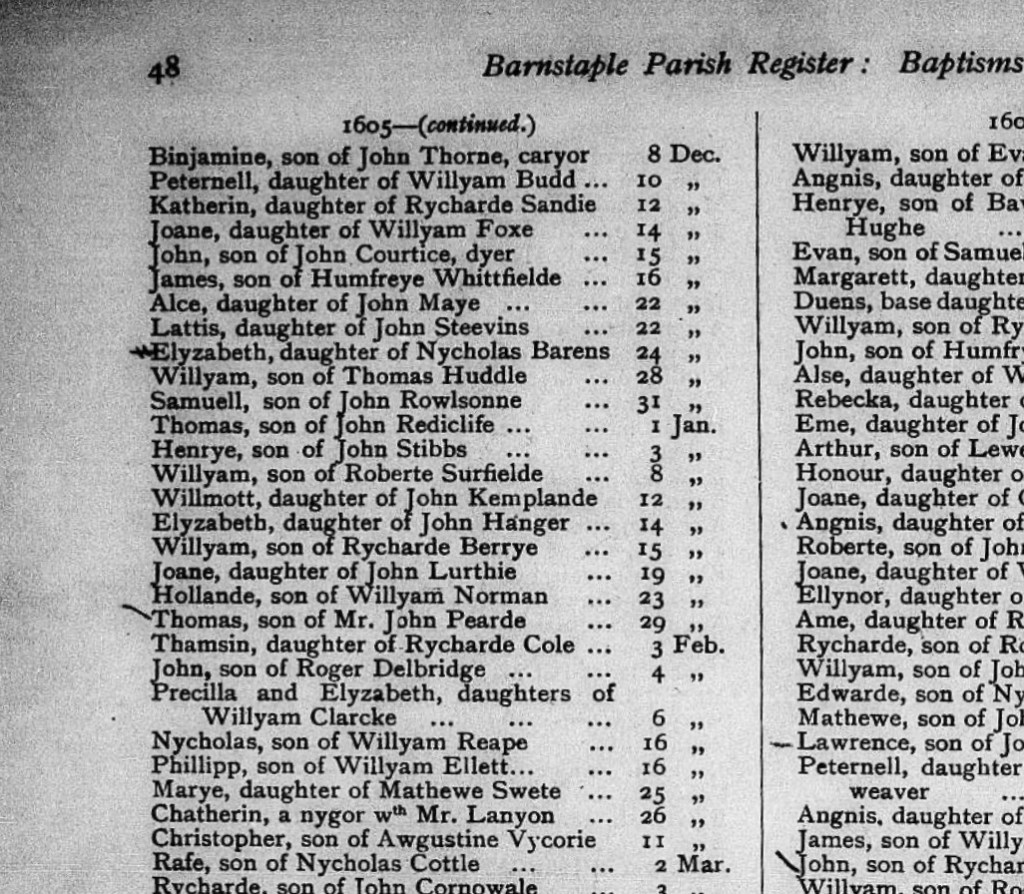 I decided to go through the Barnstaple parish register page by page looking for any information about Arthure or Marye that may have been mis-transcribed and that’s when I stumbled on a whole new area of English history.