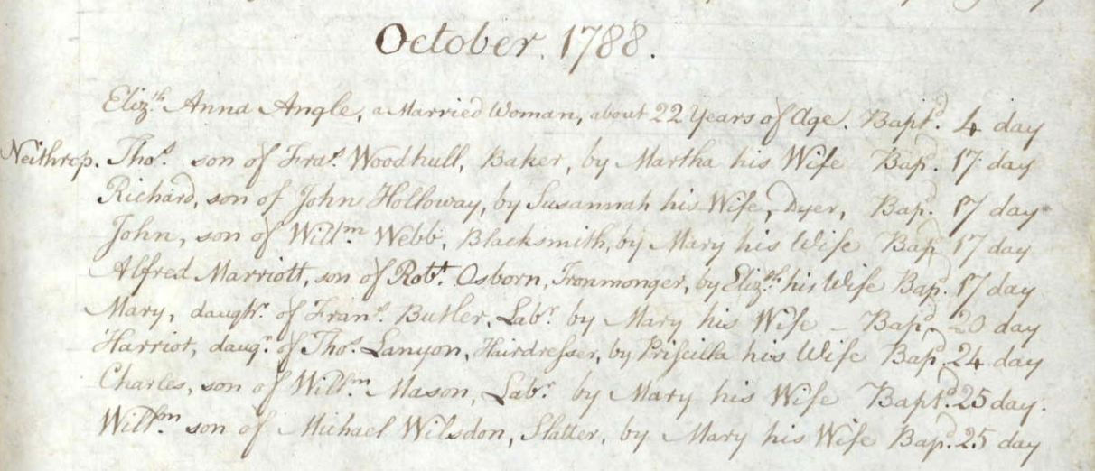 The parish record keeper has helpfully recorded the occupations of the men presenting their children for baptism so we know that Thomas was a hairdresser.