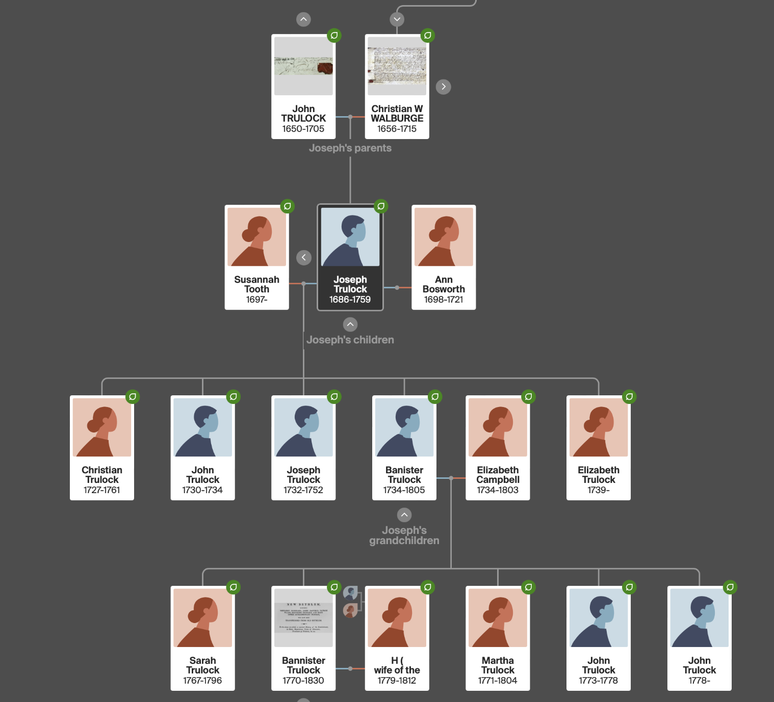 John Trulock and Christian Wallburge were the great grandparents of Banister Trulock born in 1770.