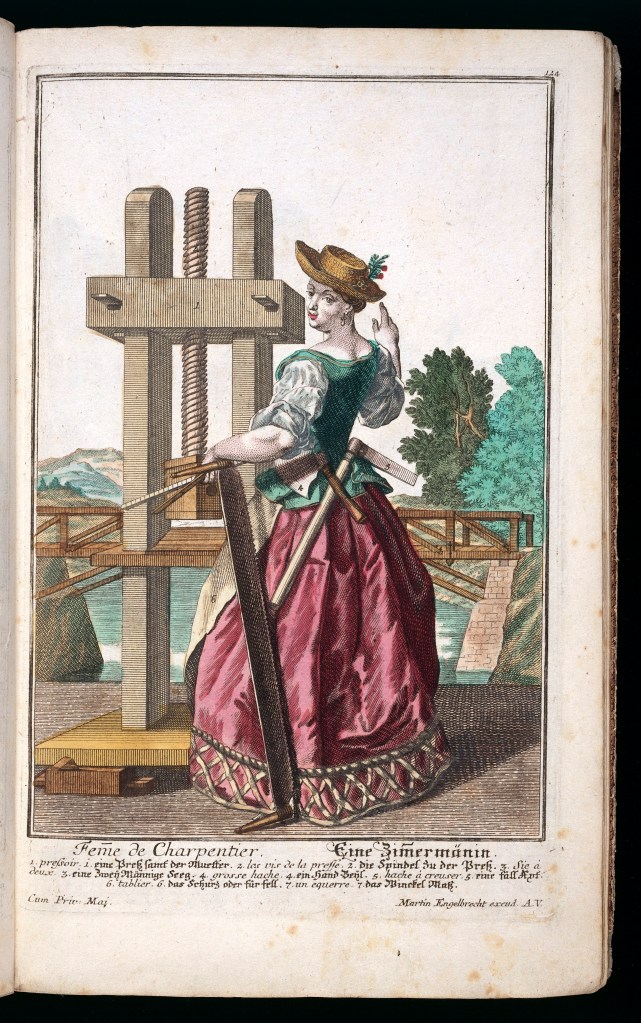 Feme de Charpentier, A female Carpenter with tools costume and apparatus