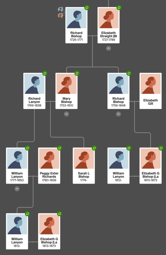 To complicate things further Mary Bishop had a brother called Richard (1759-1848) and Richard Bishop married Elizabeth Gill. Their daughter Elizabeth Gill Bishop married William Lanyon, the grandson of Richard Lanyon and Elizabeth Searle!