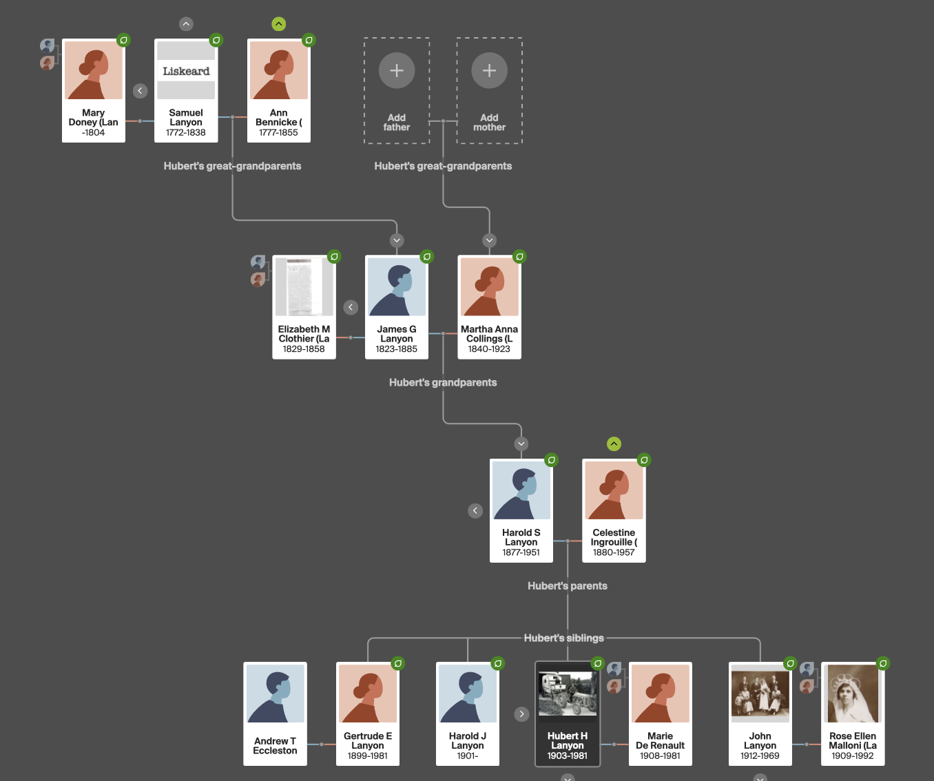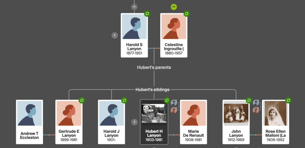Hubert was born in St Peter Port in 1903 the second son of Harold St John Lanyon and Celestine Ingrouille. On 14 May 1929 he married Marie de Renault. They had three children: Megan, Mark and Maisie. Hubert worked as a baker on the small island of Sark.