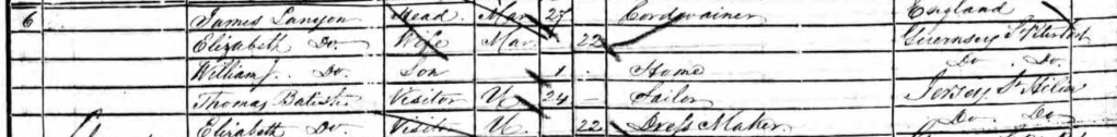 James was born in Liskeard but by 1851 he had moved to St Peter Port, the capital of Guernsey, and was working as a cordwainer.
