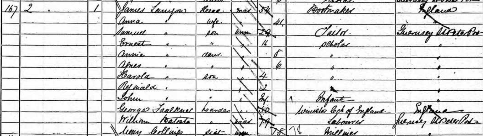 The 1881 census shows them all living at 2 Kings Road, St Peter Port. The house must have been pretty crowded as there were two elderly lodgers as well!