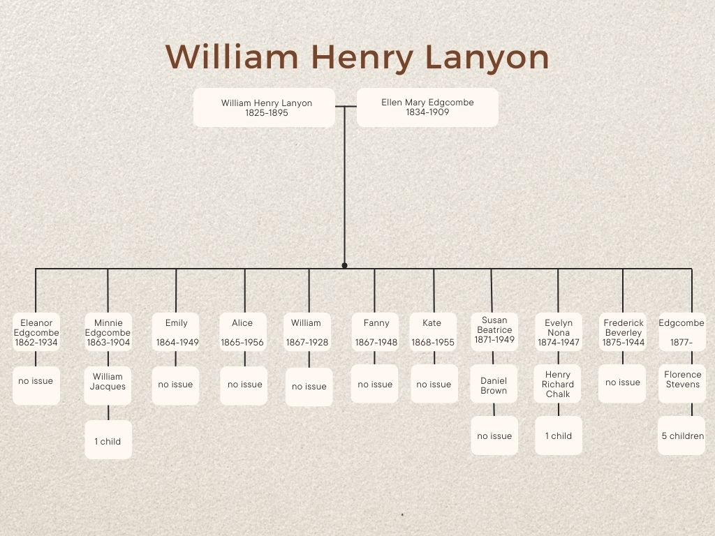 William Henry was the son of Richard Lanyon and Susan Tucker of Acton Castle. He was the eldest son born in 1825 and appears to have been quite an unusual man. Although he was married and had a large family he chose to live apart from them.