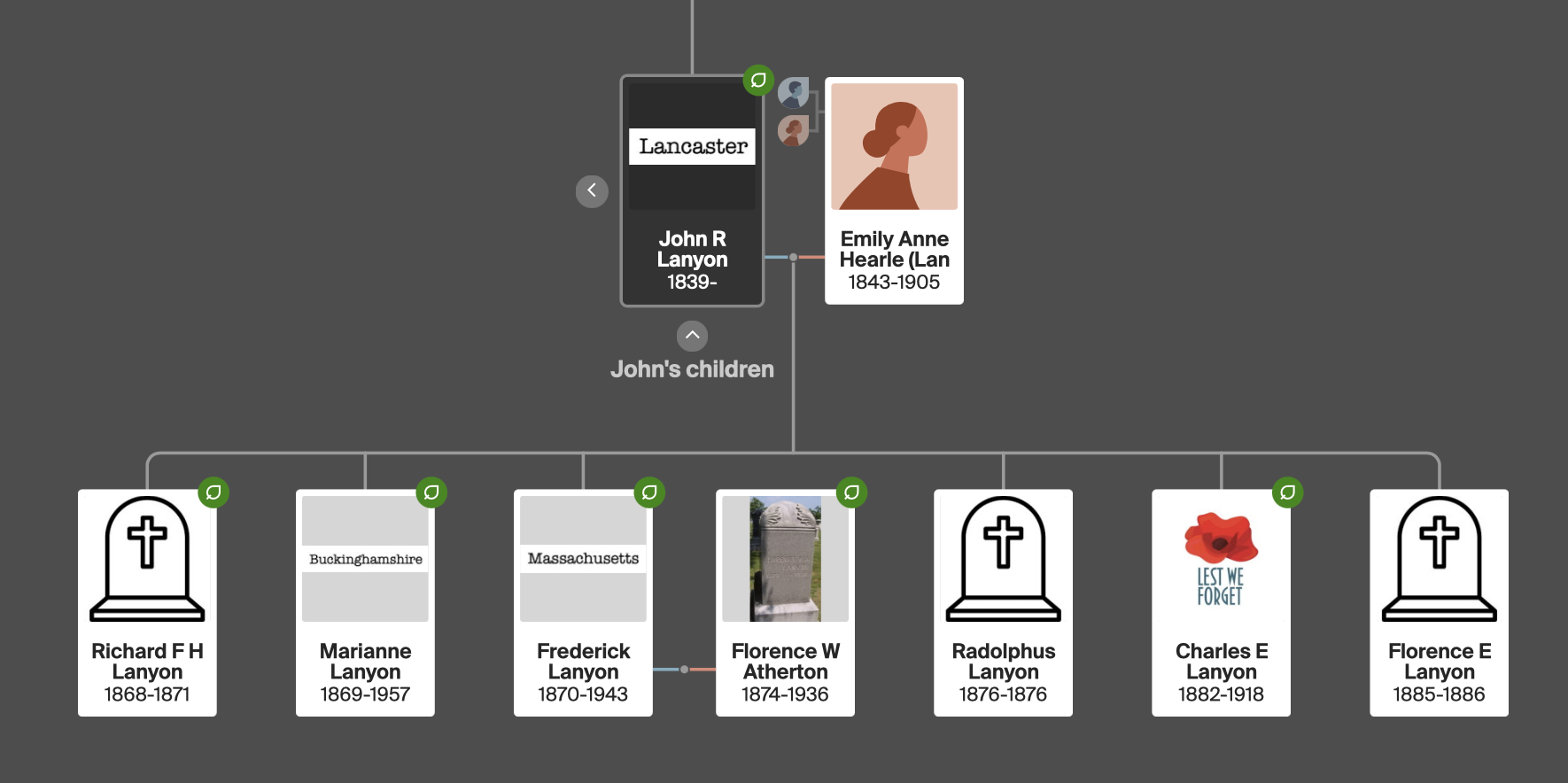 John Rodolphus Lanyon had no grandchildren and his line died out.