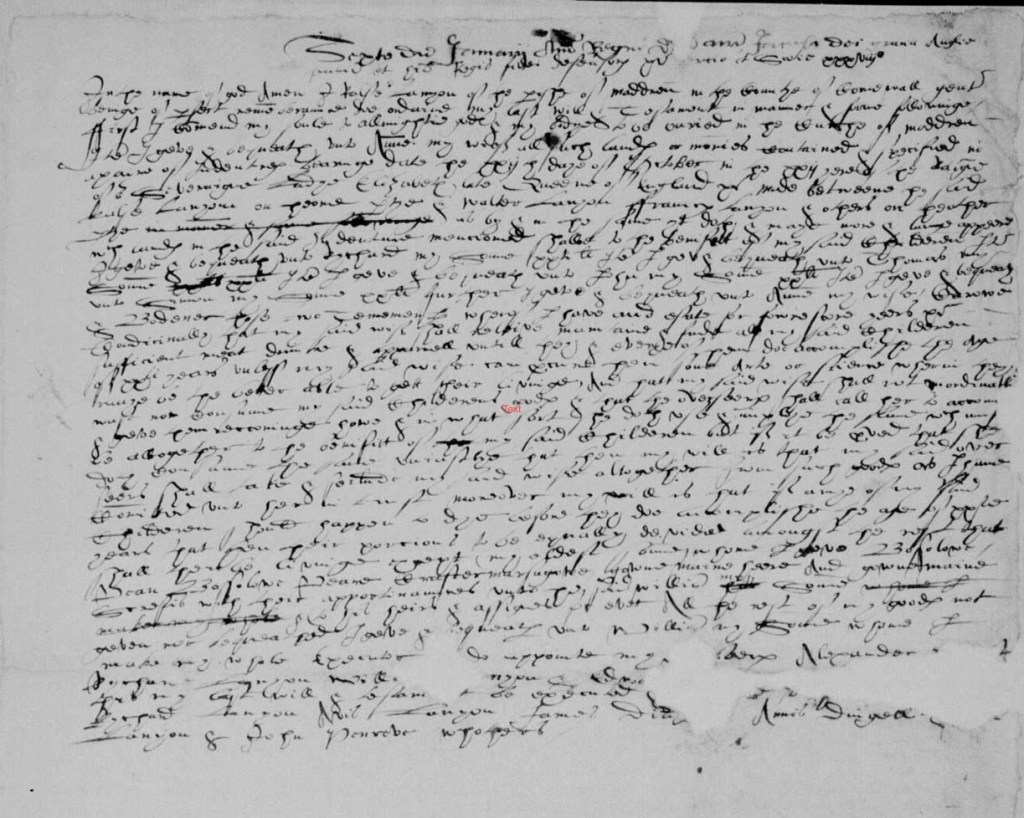 “I geve and bequeath unto Anne my wife all such lands or monies contained & specified in a paire of Indentures bearinge date the xxij the daye of October in the xxij yeare of the Raigne of or Severeaigne Ladye Elizabeth late Queene of England & made between the said Ralpe Lanyone on the one partye & Walter Lanyon Francis Lanyon & others on the other partye.” So in October 1580 Raphe and his uncle Walter had agreed a pair of Indentures regarding land.