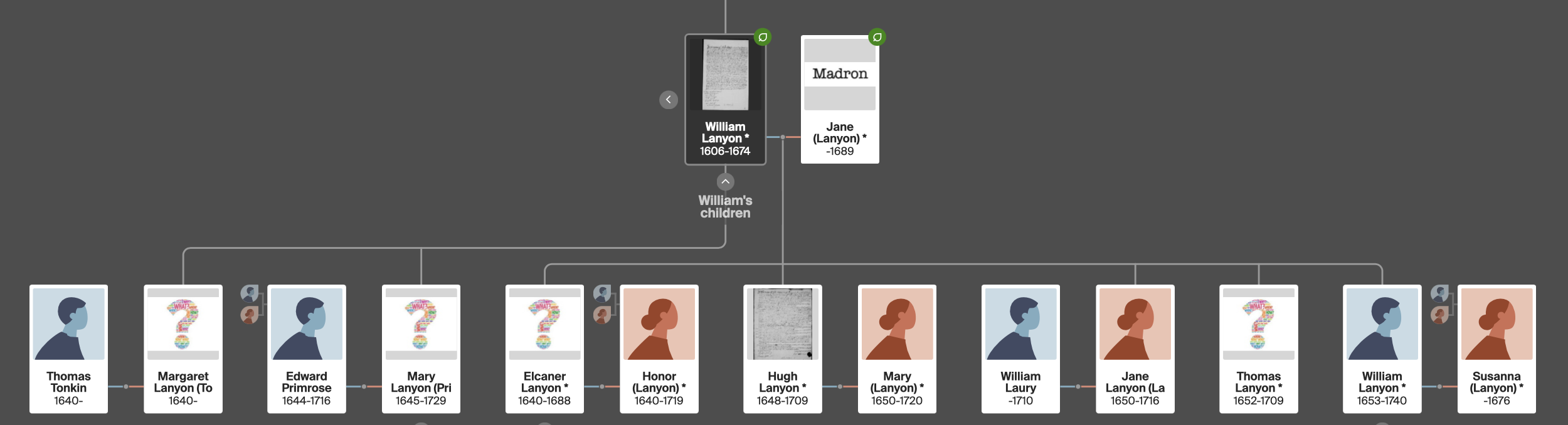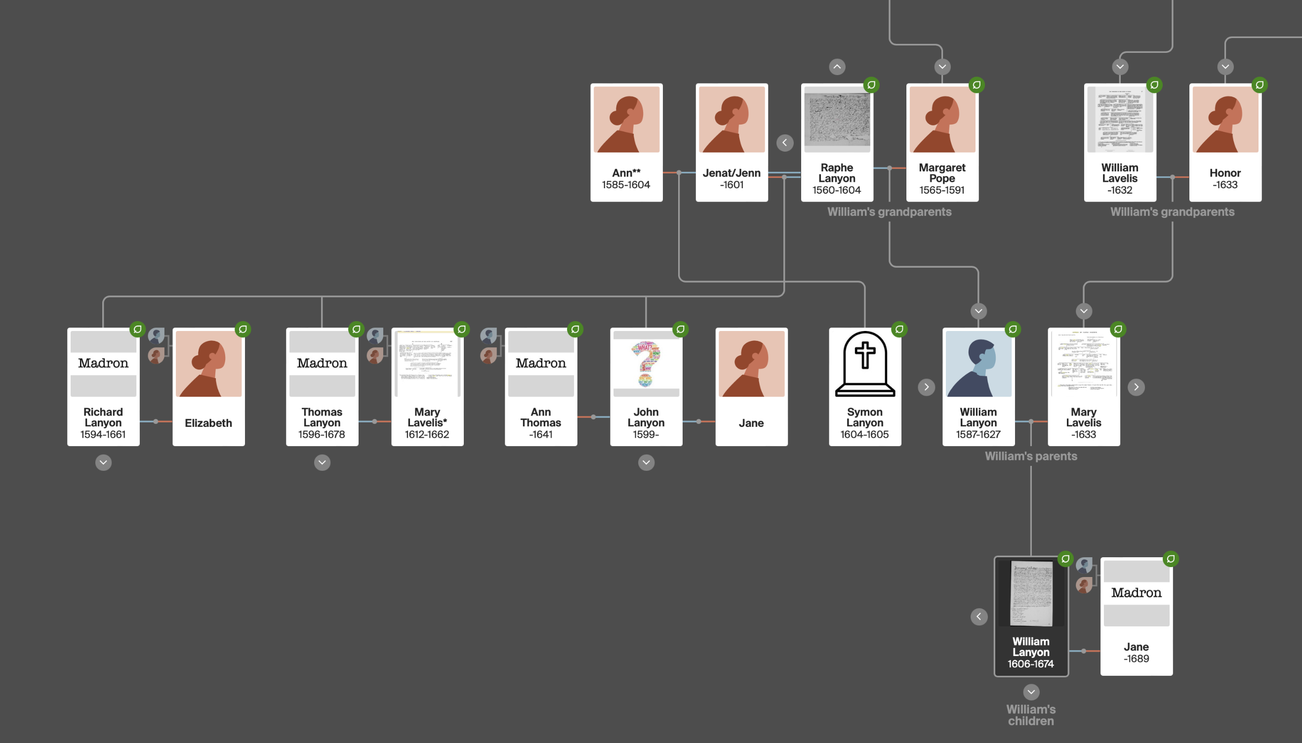 Thomas -aft. 1633 mentioned in grandfather William Levelis’ will of 1633. In 1637 a Thomas Lanyon gent married Mary, possibly his marriage.